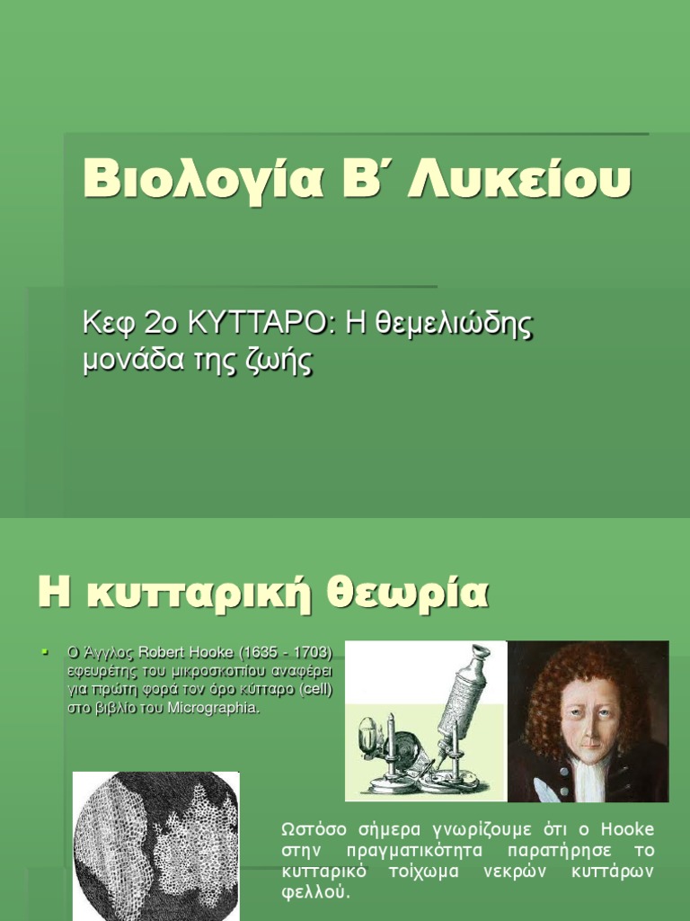 H διδασκαλία του μαθήματος της βιολογίας γενικής παιδείας β' τάξης λυκείου αποβλέπει αφενός στον εφοδιασμό του μαθητή με το απαραίτητο γνωστικό υπόβαθρο προκειμένου να μπορεί να κατανοεί τους μηχανισμούς λειτουργίας του κυττάρου και να ερμηνεύει φαινόμενα ή.